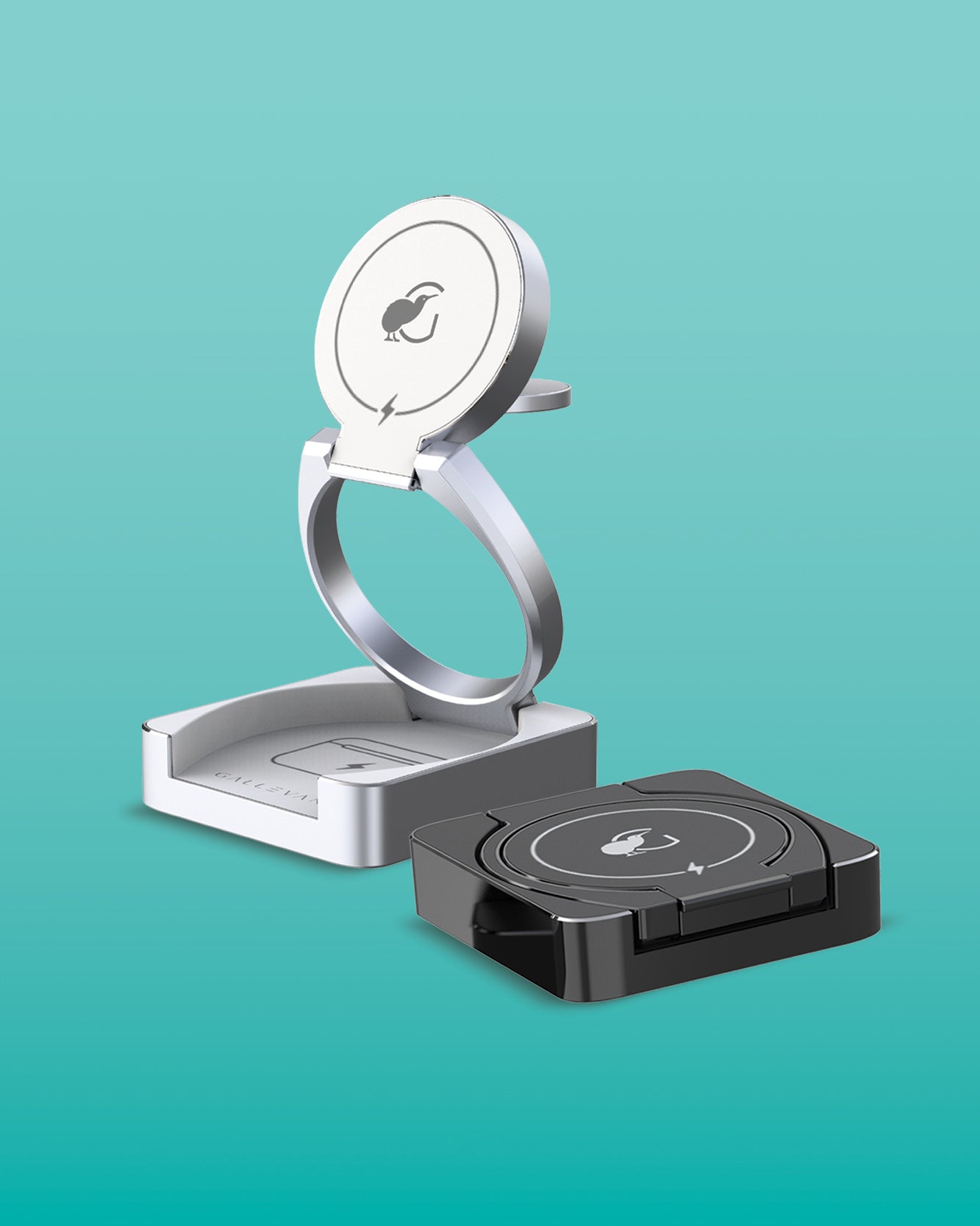 An all-in-one dock for you iPhone, AirPods and Apple Watch without the messy cables. Slim, collapsible design—perfect your your nightstand at home or on the road.